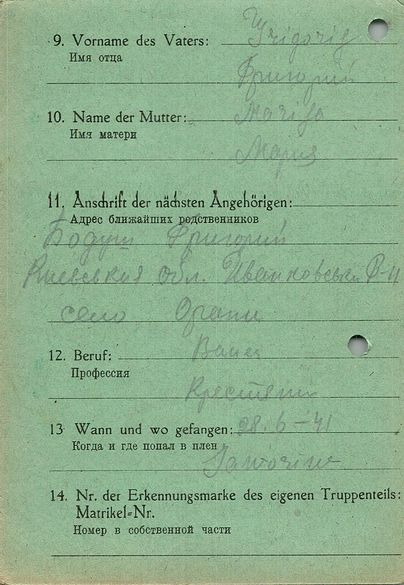 Военнопленные, трофейные карточки. Киевская обл.