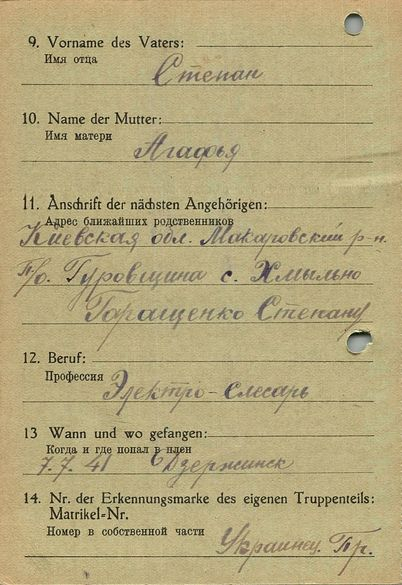 Военнопленные, трофейные карточки. Киевская обл.