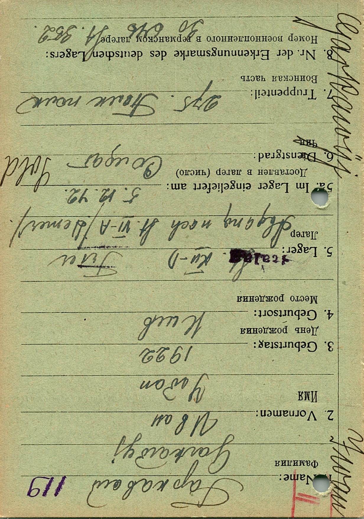 Военнопленные, трофейные карточки. Киевская обл.