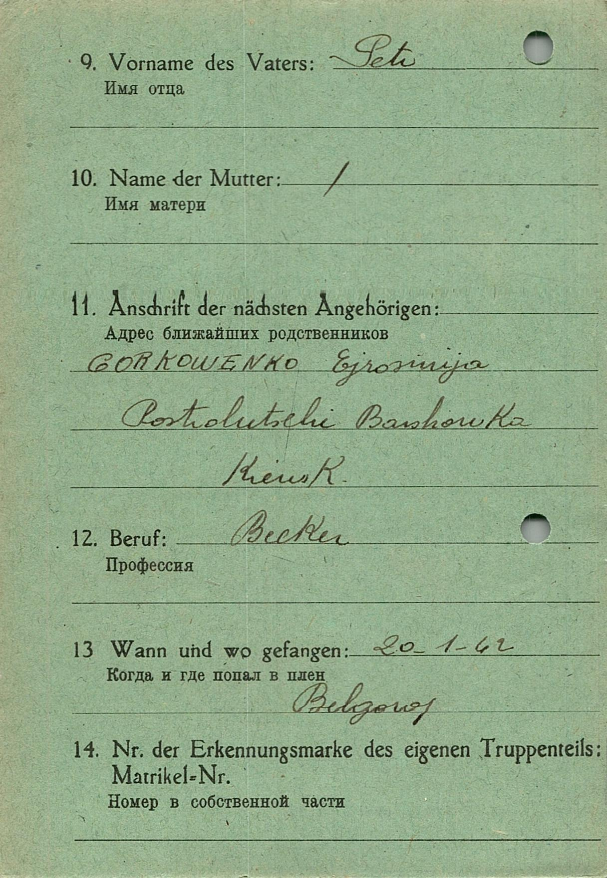 Военнопленные, трофейные карточки. Киевская обл.