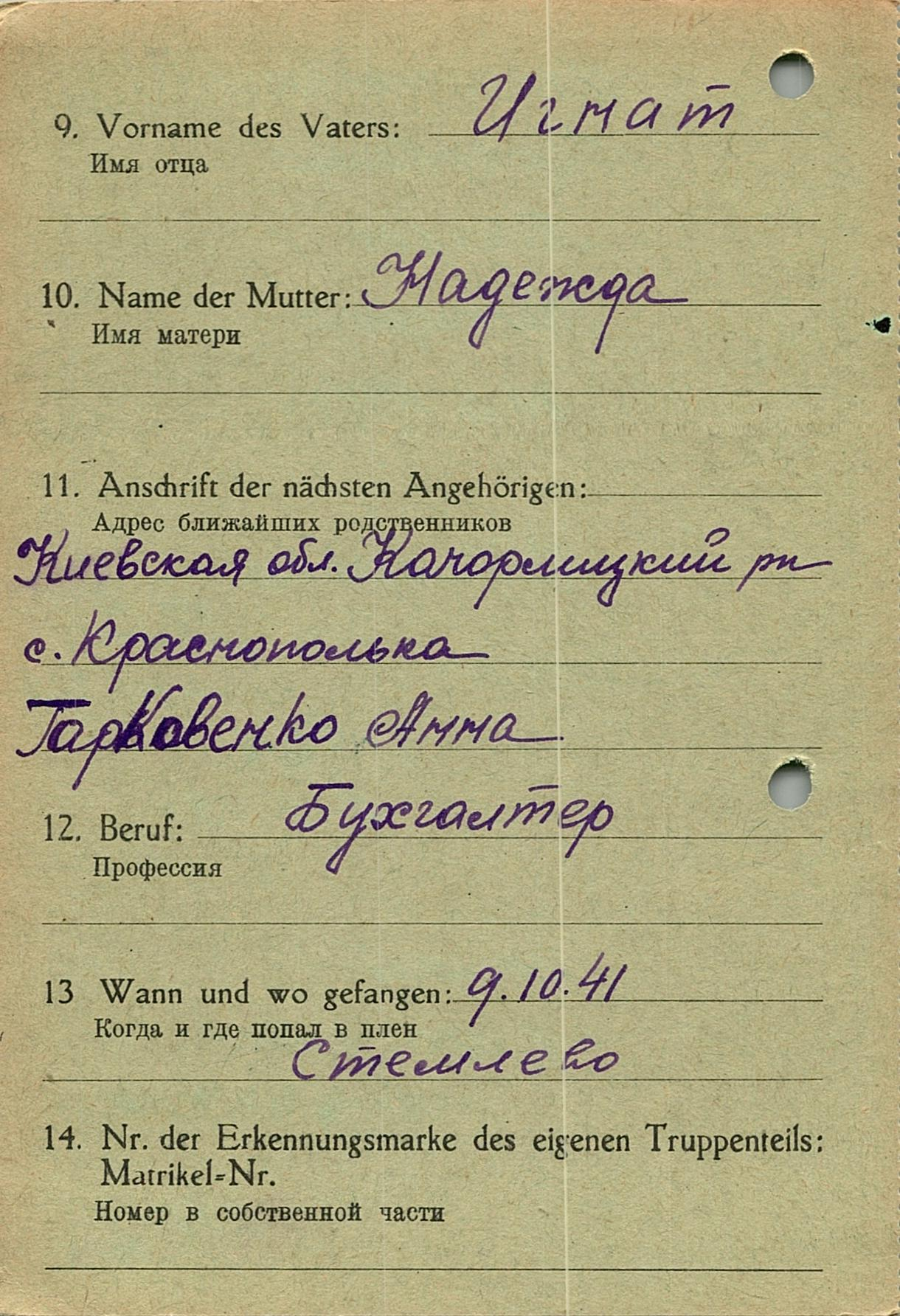 Военнопленные, трофейные карточки. Киевская обл.