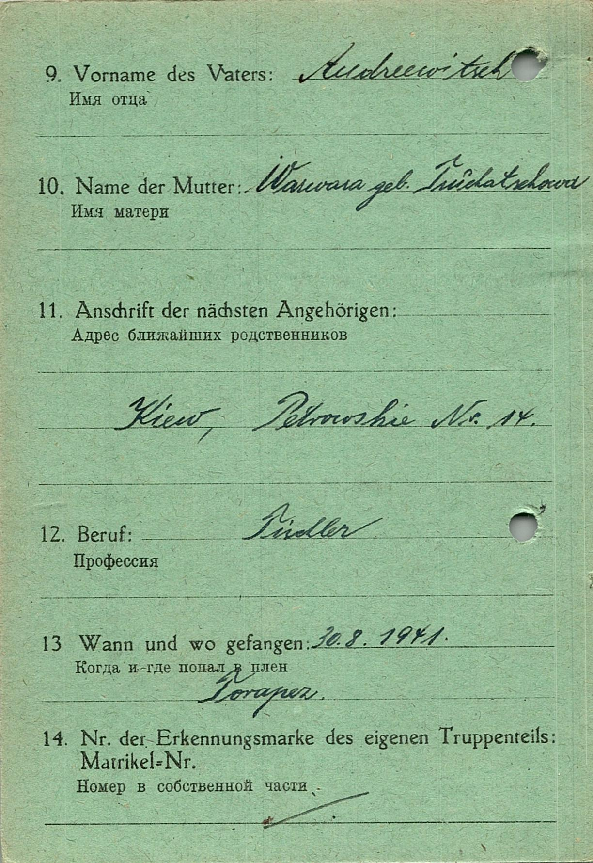 Военнопленные, трофейные карточки. Киевская обл.
