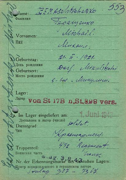 Военнопленные, трофейные карточки. Киевская обл.