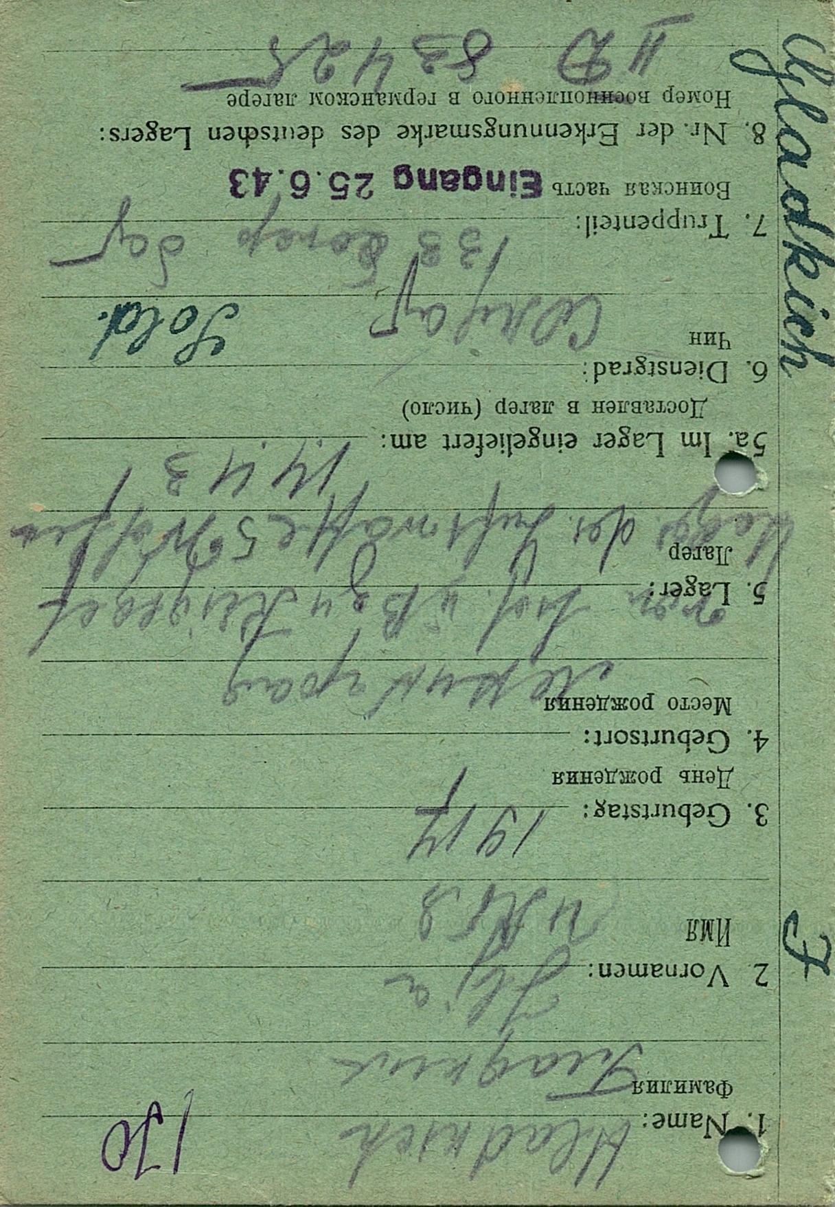 Военнопленные, трофейные карточки. Киевская обл.
