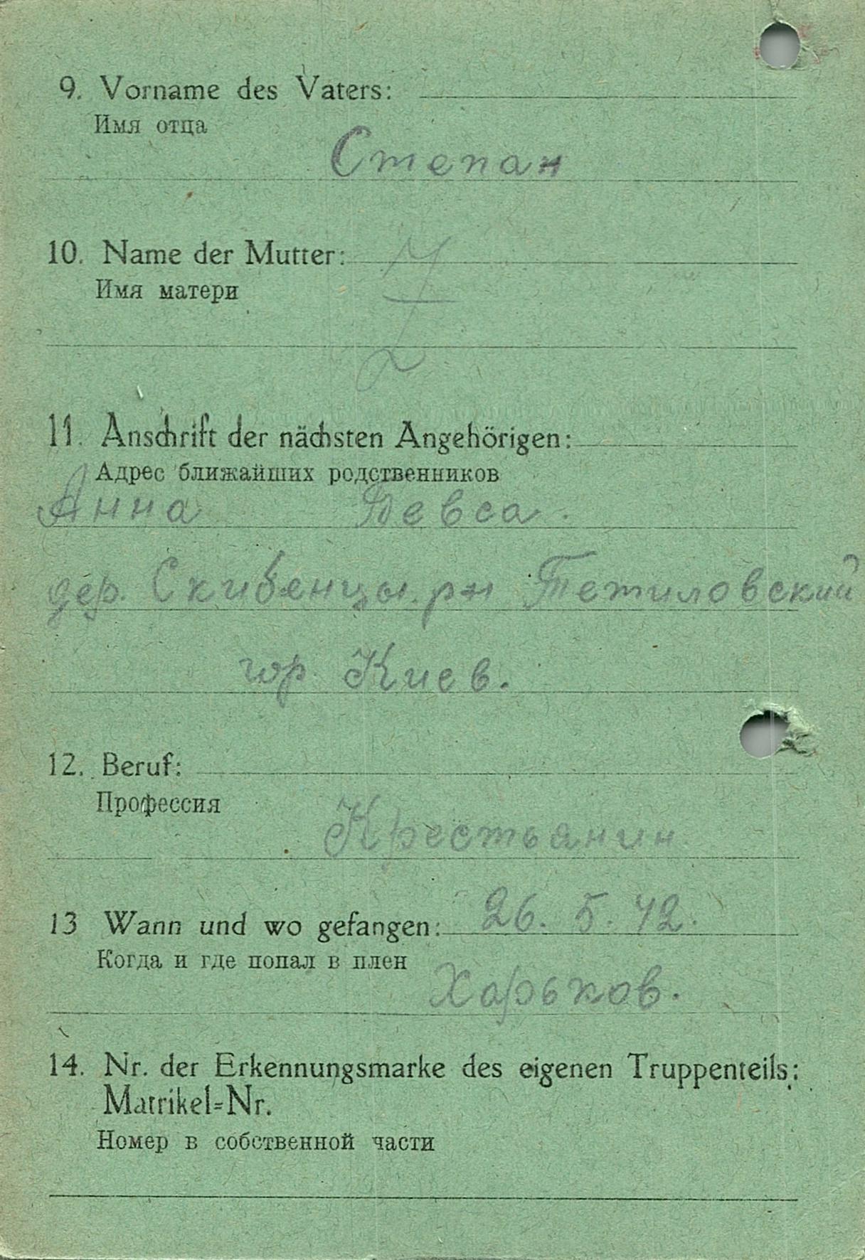 Военнопленные, трофейные карточки. Киевская обл.
