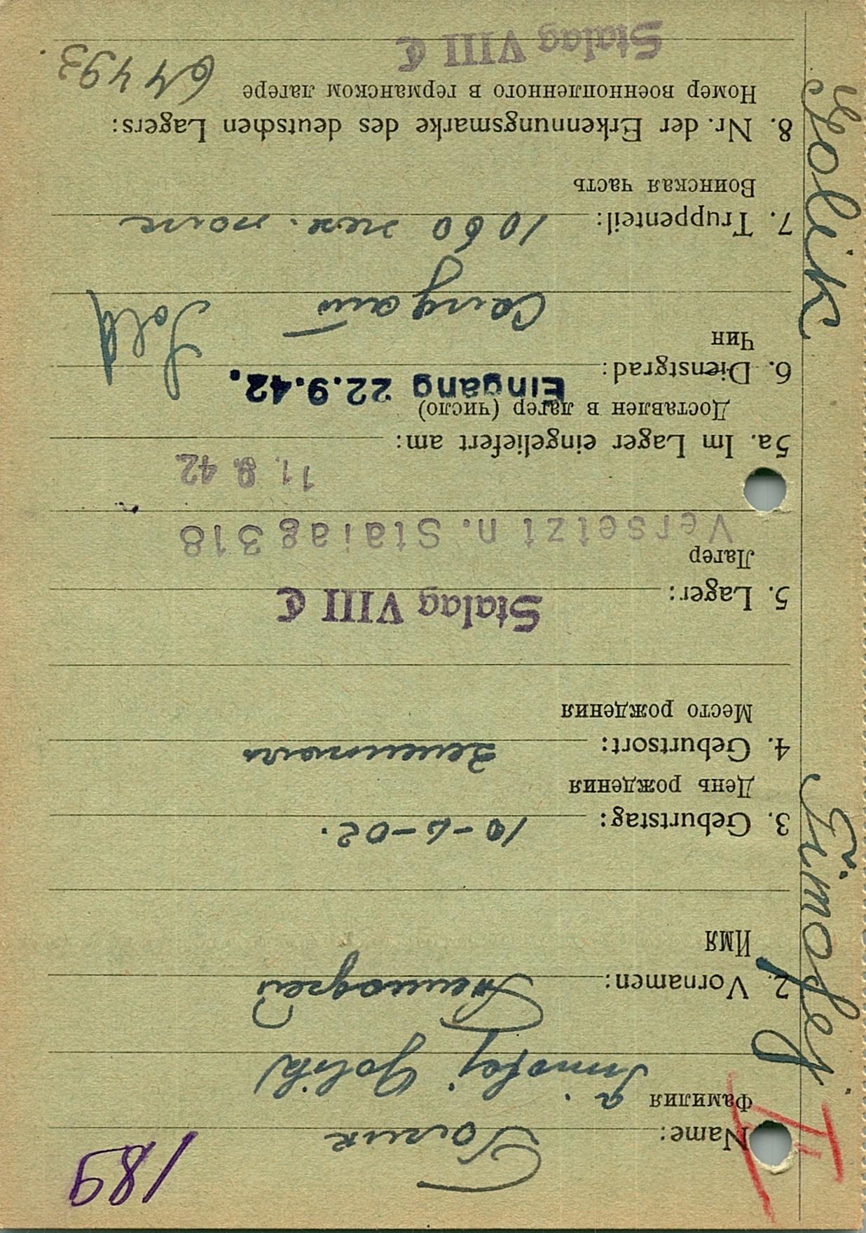 Военнопленные, трофейные карточки. Киевская обл.