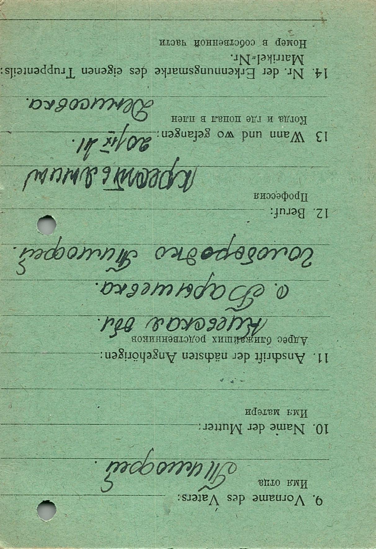 Военнопленные, трофейные карточки. Киевская обл.
