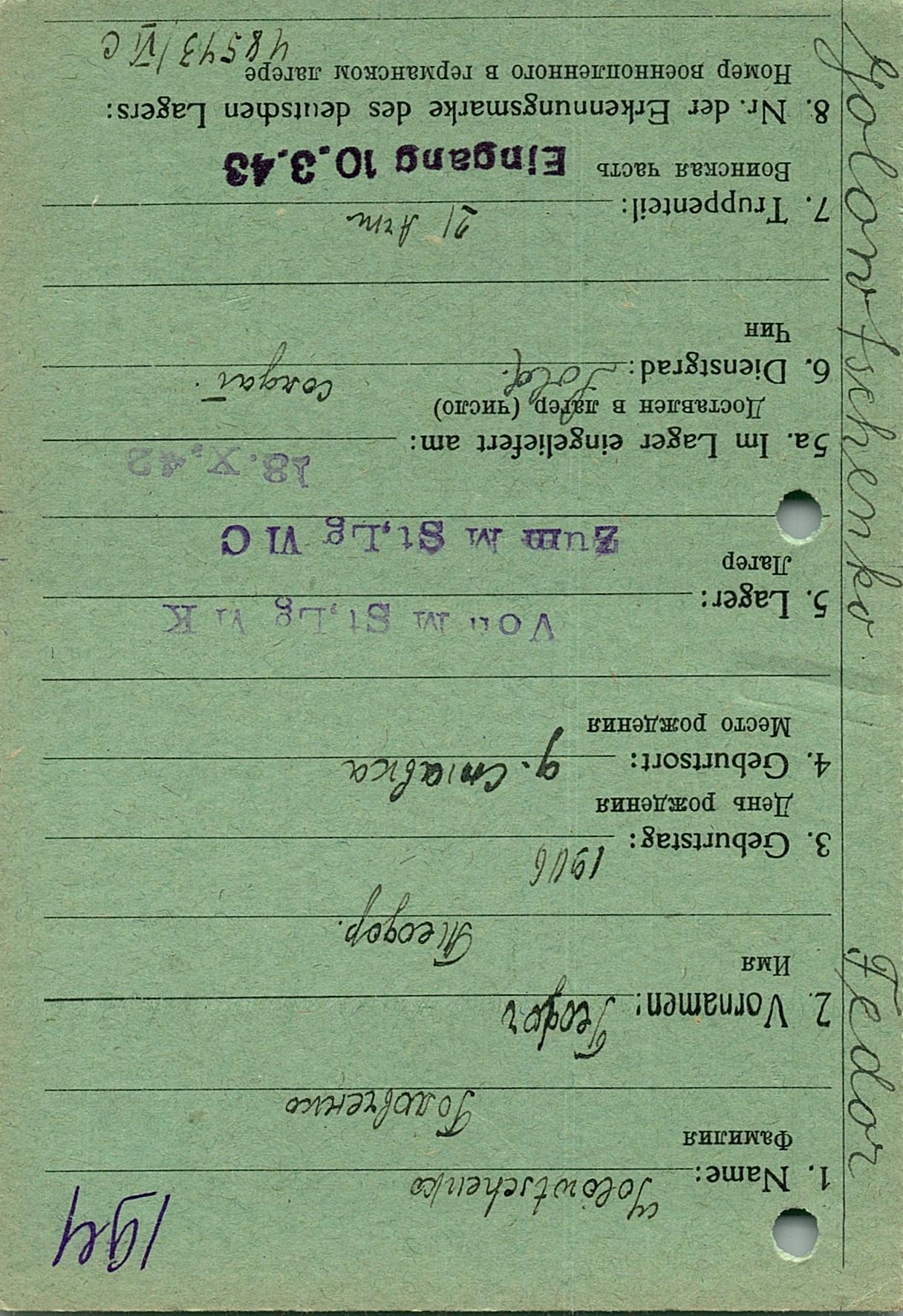 Военнопленные, трофейные карточки. Киевская обл.