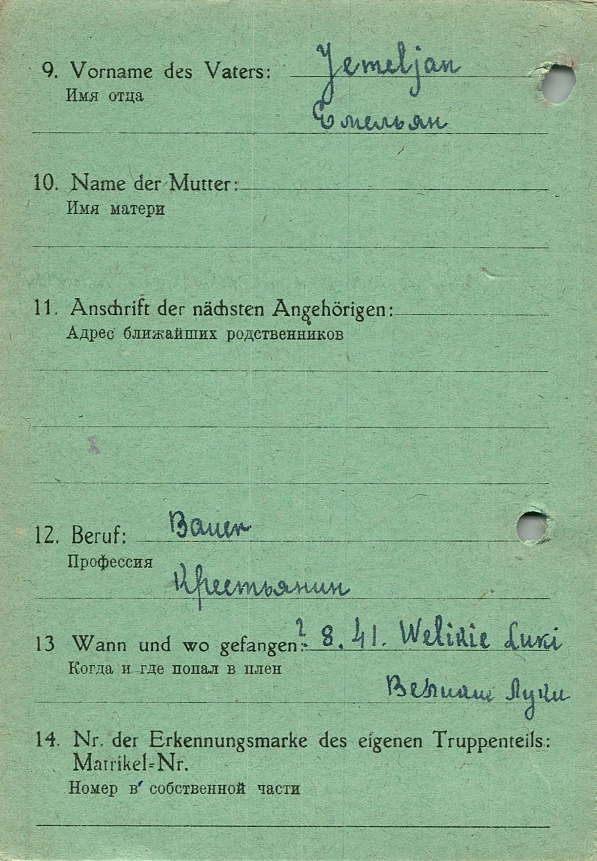 Военнопленные, трофейные карточки. Киевская обл.