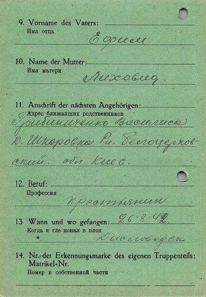 Военнопленные, трофейные карточки. Киевская обл.