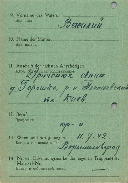 Военнопленные, трофейные карточки. Киевская обл.