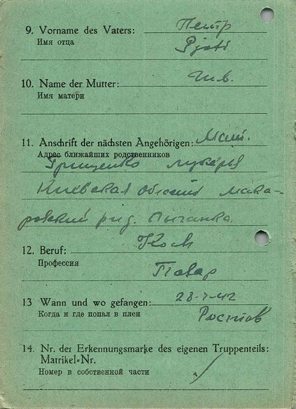 Военнопленные, трофейные карточки. Киевская обл.