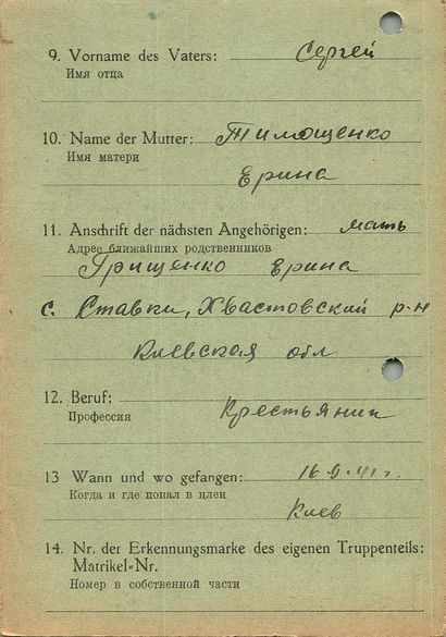 Военнопленные, трофейные карточки. Киевская обл.
