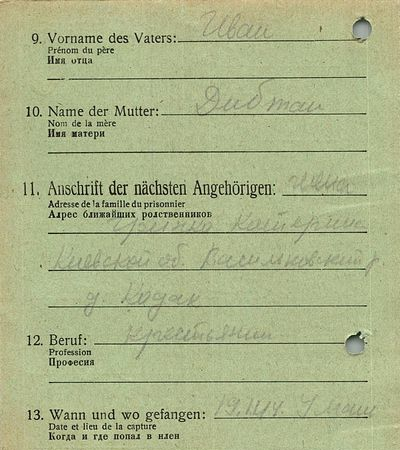 Военнопленные, трофейные карточки. Киевская обл.