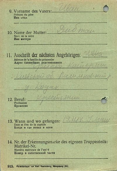 Военнопленные, трофейные карточки. Киевская обл.