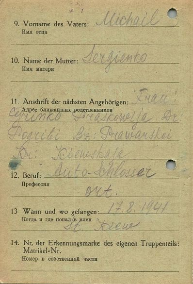 Военнопленные, трофейные карточки. Киевская обл.