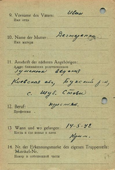 Военнопленные, трофейные карточки. Киевская обл.