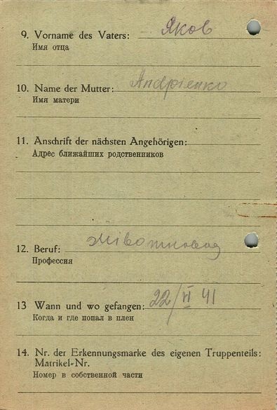 Военнопленные, трофейные карточки. Киевская обл.