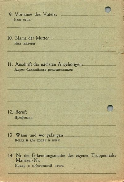 Военнопленные, трофейные карточки. Киевская обл.