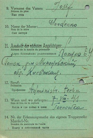 Военнопленные, трофейные карточки. Киевская обл.