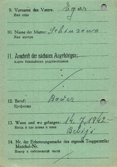 Военнопленные, трофейные карточки. Киевская обл.