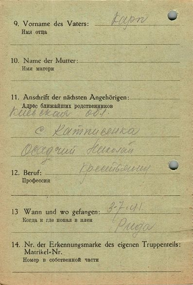 Военнопленные, трофейные карточки. Киевская обл.