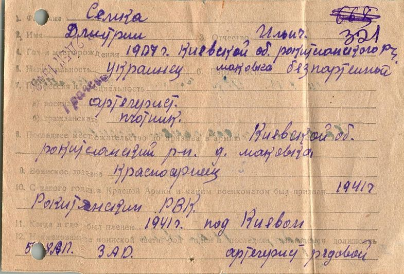 Военнопленные, трофейные карточки. Киевская обл.