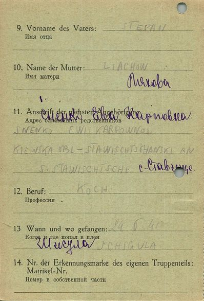 Военнопленные, трофейные карточки. Киевская обл.