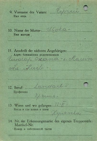 Военнопленные, трофейные карточки. Киевская обл.