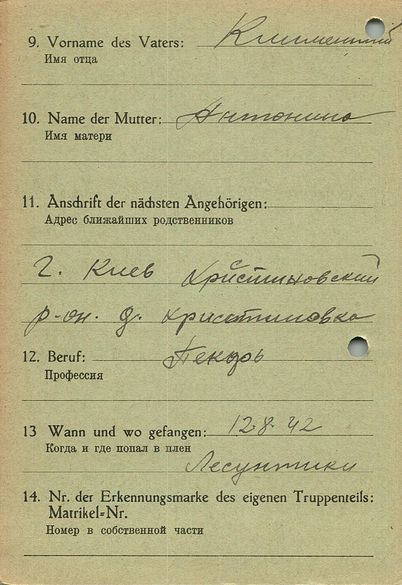 Военнопленные, трофейные карточки. Киевская обл.