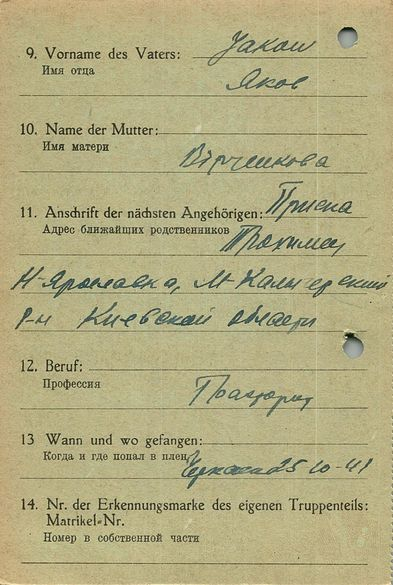Военнопленные, трофейные карточки. Киевская обл.