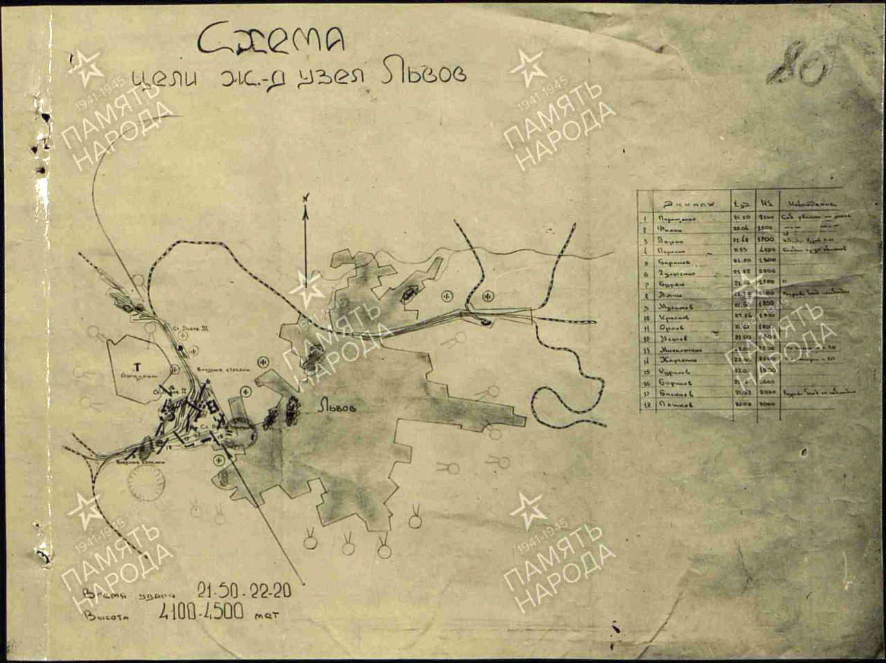 Схема налета на ст. Клепаров, в ходе которого самолет Даценко был сбит