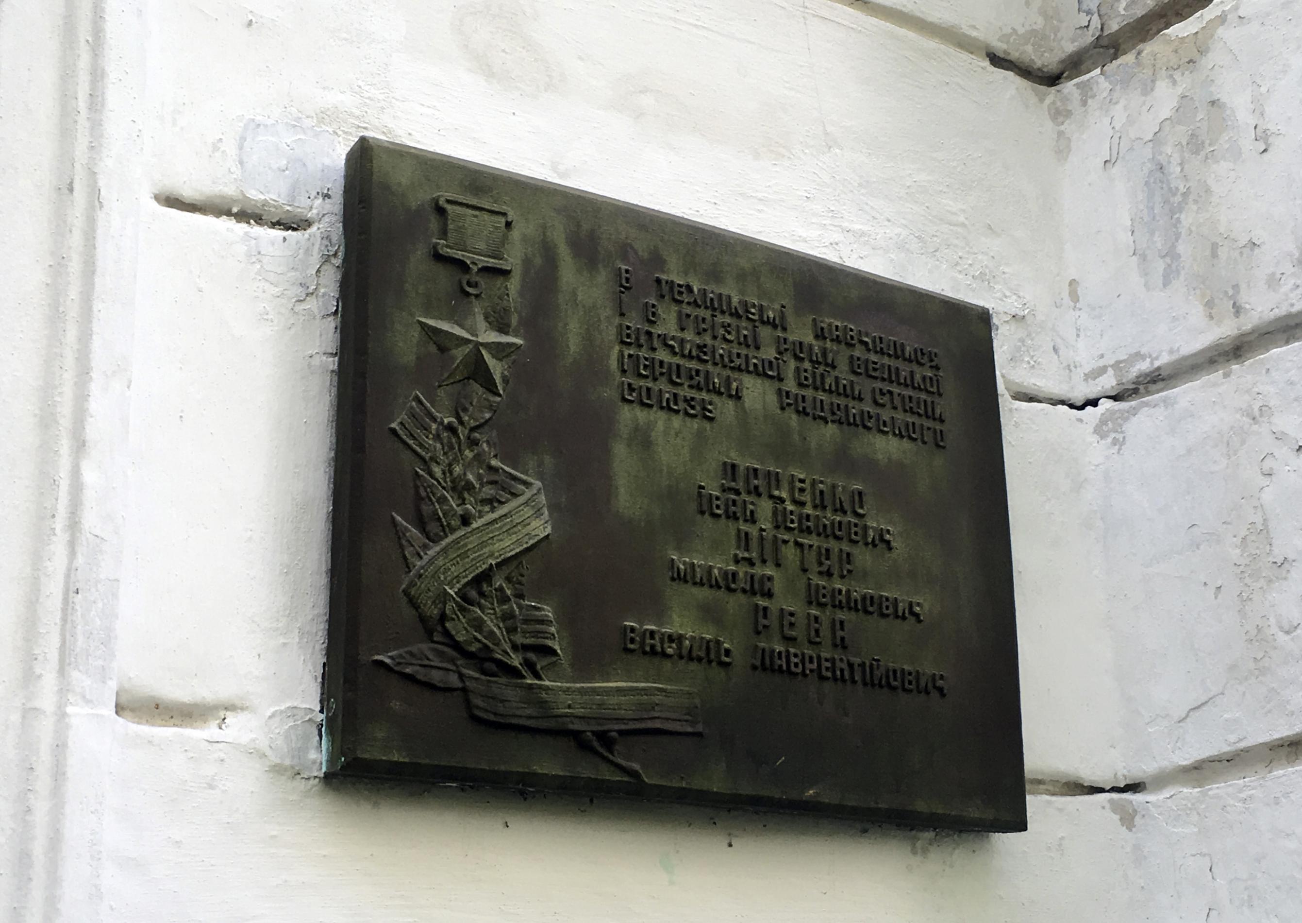Мемориальная доска на здании бывшего зооветтехникума в Писаревщине